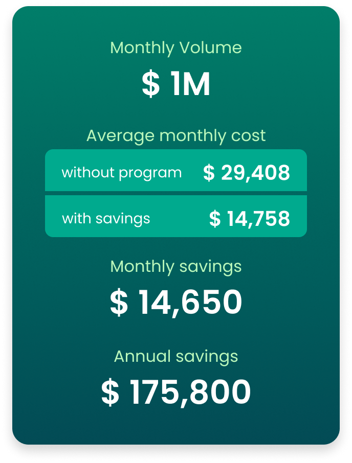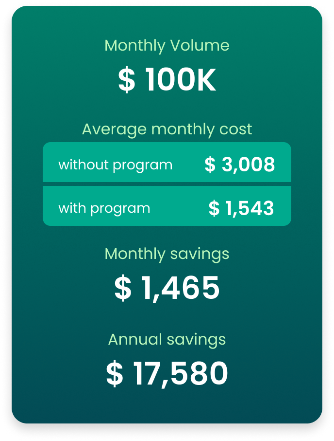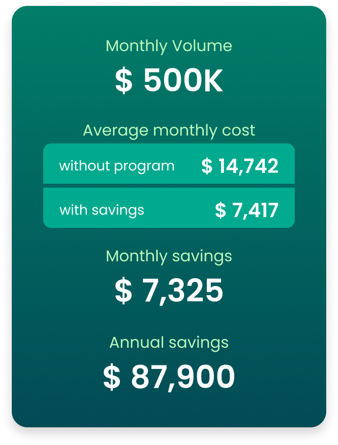 ** Savings examples are for illustration only; actual results depend on your specific business activity.